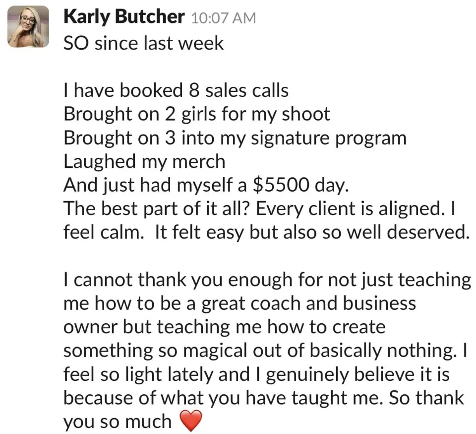 I’m excited to see you transform your life and business using our feminine sales method and mastering the art of feminine communication! I’ve said it before and I’ll say it again - your femininity is not a barrier to sales, wealth and financial freedom, it is the source of it.